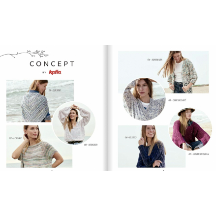 Concept by Katia 14 apporte 7 modèles de tricot et de crochet à profiter avec certains des fils de la ligne Concept. Nous proposons de tricoter avec des fils dans une gamme de couleurs froides parfaites pour toutes les saisons. Nous brisons cette apparente froideur avec les tons roses et mauves.